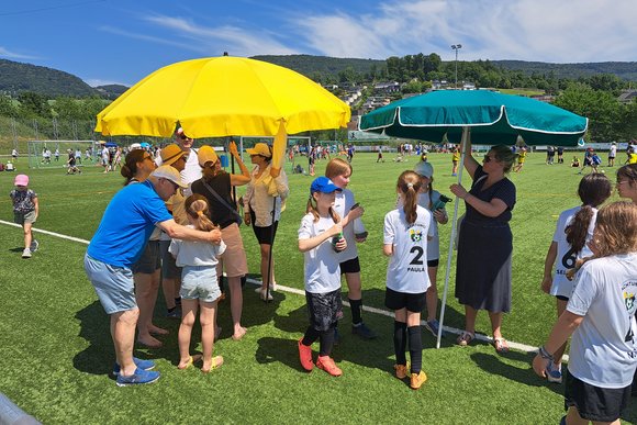 Die vielen vielen Zuschauenden feuerten ihre Teams mit Zurufen und Fangesängen lautstark an. Die an beiden Tagen sehr heissen Temperaturen taten der grossartigen und unvergleichlichen Turnierstimmung keinen Abbruch. Jeweils schon am späteren Nachmittag gab’s dann für alle teilnehmenden Schüler:innen eine Erinnerungsmedaille und für die Siegerteams Gold, Silber und Bronce und natürlich den verdienten Siegerpokal.