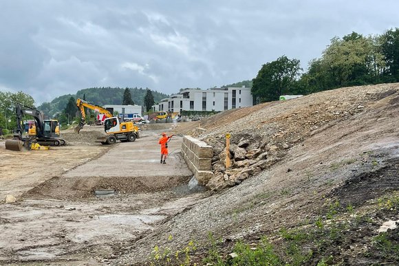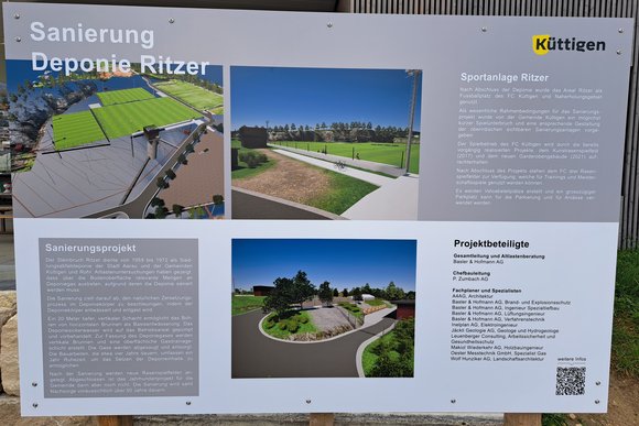 Nach über 10 Jahren intensiver Planungs- und Projektierungsarbeit ging es im Dezember 2023 endlich los. Begonnen wurde mit verschiedenen Vorbereitungsarbeiten wie dem Abriss des altehrwürdigen Garderobengebäudes, mit Rodungsarbeiten sowie eine deutliche Verbreiterung der Zufahrt ab Bibersteinerstrasse. Im Frühling 2024 konnten dann mit den eigentlichen Sanierungsarbeiten begonnen werden. Dabei geht es darum, den Deponiekörper mit Drainagen zu entwässern und entgasen, sodass der natürliche Zersetzungsprozess des eingelagerten Abfalls optimal in Gang gesetzt werden kann. Herzstück der Bauarbeiten ist ein 20 Meter tiefer Bohrstollen, damit auf dem Grund der Deponie das Drainageleitungsnetz gelegt werden kann. Es wird mit einer Bauzeit von ungefähr vier Jahren gerechnet; beinhaltet ist auch ein Jahr Ruhezeit, damit die Deponieinhalte sich setzen können. Anschliessend werden auf der sanierten Deponie neue Rasenspielfelder angelegt, welche der FC wieder nutzen wird.